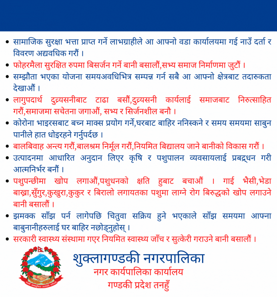 पोखरा, १३ चैत्र । श्री राम नवमीको अवसर पारेर पोखरामा विश्व शान्तिको कामना सहित प्रवचन समारोह आयोजना गरिएको छ । शुक्रबार पोखरा रानीपौवास्थित मनमन्दिरमा आयोजित विश्वमा हिंसा र युद्धको तत्काल अन्त्य भै शान्तिको कामना सहित सो कार्यक्रम सम्पन्न भएको [...]