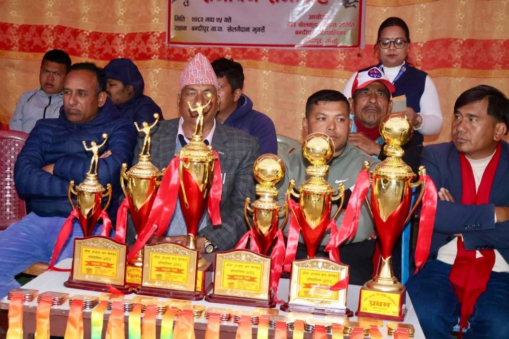 माघ २५, बन्दीपुर । तनहुँको बन्दीपुर गाउँपालिकामा सञ्चालन भएको चौथो अध्यक्ष कप खेलकुद प्रतियोगिता २०८२ शनिबार सम्पन्न भएको छ। माघ २३ गतेदेखि २५ गतेसम्म चलेको प्रतियोगिता बन्दीपुर गाउँपालिका शिक्षा, युवा तथा खेलकुद शाखाको समन्वय तथा गाउँ खेलकुद विकास समितिको आयोजनामा सम्पन्न भएको हो।
